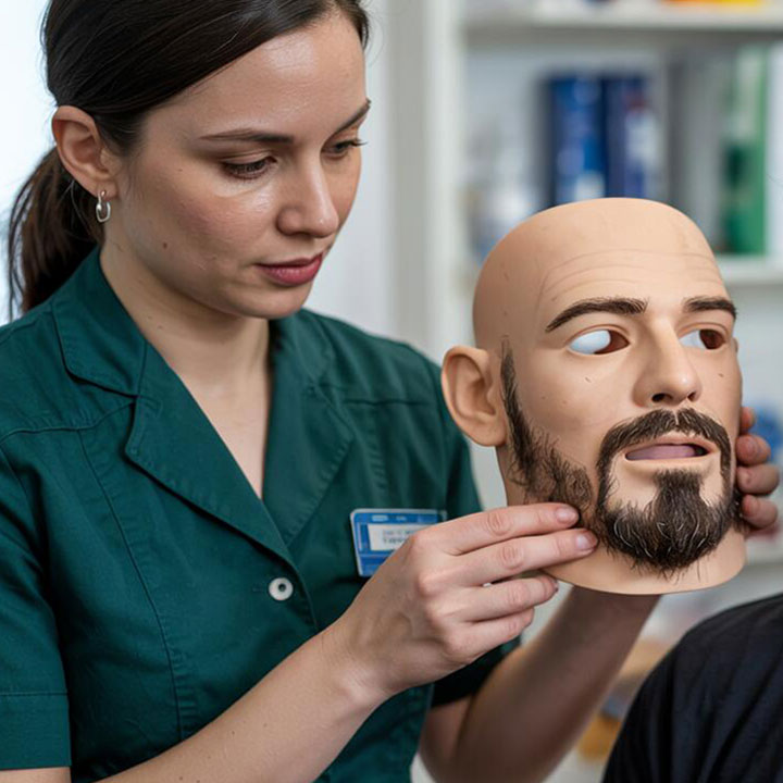 The face is a canvas of intricate features, and our team of artists and prosthetists are the masters of this art. We specialize in recreating the delicate intricacies of the human face, from the subtle curves of the eyes and eyebrows to the unique contours of noses, lips, and ears. Our process begins with a detailed consultation and analysis of the client's facial structure and desired outcomes.